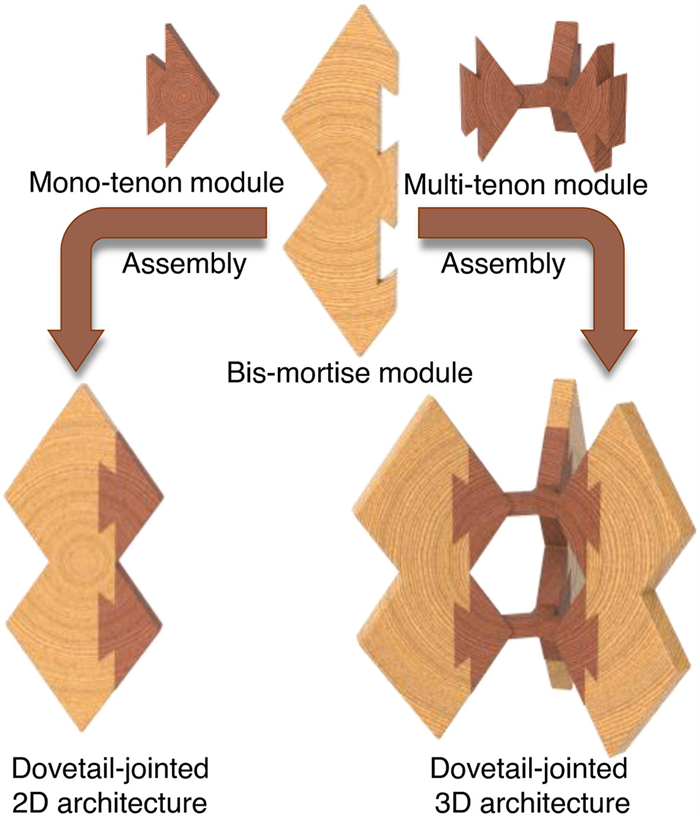 | Fig. 1. Cartoon illustration of dovetail joints in construction of architecture. | |