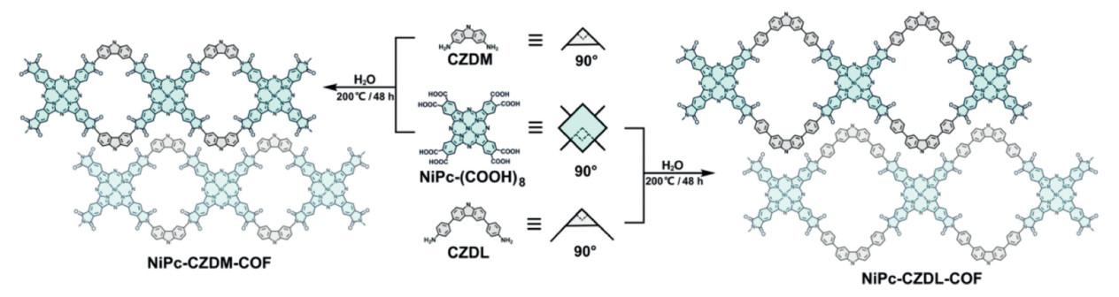 | Scheme 2. Schematic synthesis of NiPc-CZDM-COF and NiPc-CZDL-COF. | |