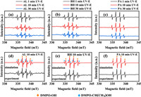 | Fig. 4. The EPR spectrum of Fe(Ⅲ)-PROC complexes using ethanol (E) as a scavenger at pH 2.2 under UV irradiation. (a–c) are experimental data, and (d–f) are simulated data. The Fetot concentration was 100 µmol/L and the PROC concentration was 25 mg/L. Ethanol concentration was 0.5 mol/L. | |