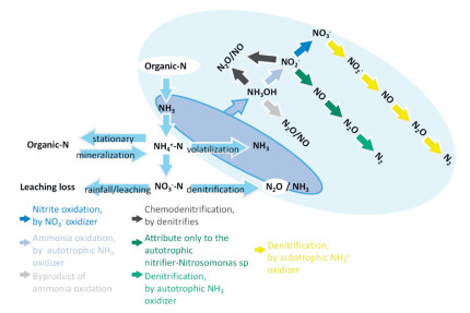 | Fig. 2. Transformation pathways of N and potential pathways for NxO production in aerobic biological treatment of SS. | |