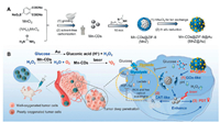 | Fig. 4. CDs-based bifunctional nanosystem (MnZ@Au) exhibiting cascade catalytic activities for glucose oxidation and H2O2 conversion. The nanosystem alleviates hypoxia and amplifies PDT efficacy via GOx-like and CAT-like activities, with enhanced tumor penetration and glycolysis disruption. Copied with permission [34]. Copyright 2023, American Chemical Society. | |