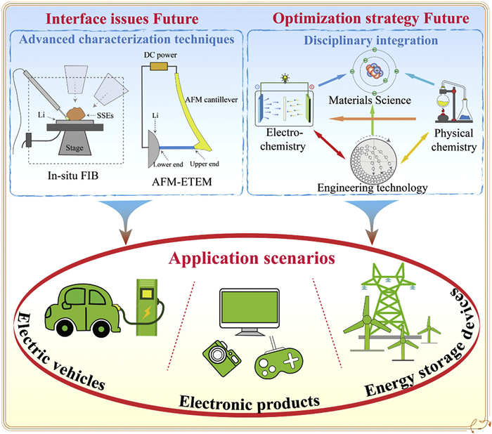 In future investigations, advanced physical characterization techniques (e.g., in-situ TEM, FIB-SEM, and ToF-SIMS) should be systematically integrated with electrochemical in-situ testing methods (including in-situ EIS, in-situ XRD, and in-situ neutron diffraction) to fundamentally elucidate the formation mechanisms of interfacial issues between SSEs and LMA. Building upon clarified interfacial mechanisms, context-specific optimization strategies should be developed through interdisciplinary integration of electrochemistry, materials science, physical chemistry, and engineering technologies (Fig. 10). This coordinated approach aims to create interface solutions with high stability, scalable manufacturability, and environmental adaptability. At the same time, it is necessary to pay attention to the application of innovative strategies such as bionic design and advanced engineering technologies (such as TPMS structure design, and SAMs technology), to promote the large-scale and commercial application of high-energy-density lithium metal all-solid-state batteries in fields such as electric vehicles, consumer electronics, and grid-scale energy storage, and to release their huge potential as the next-generation energy storage "Holy Grail".