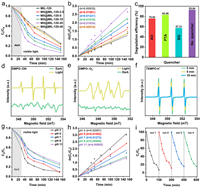 To identify the predominant free radicals involved in the degradation of TCH by the photocatalyst, we performed the free radical capture experiments, respectively [49,50]. Three types of free radical quenchers, terephthalic acid (PTA), benzoquinone (BQ), and ammonium oxalate (OA) were adopted, which can capture ·OH, ·O2−, and h+, respectively [51]. It was found that the apparent rate constant of photocatalytic degradation of TCH in the presence of each free radical quencher was reduced to different degrees (Fig. 5c). Notably, after capturing ·O2− and h+, the photocatalytic degradation efficiency of the MX@MIL-125-20 catalyst decreased significantly, from the original 92.95% to 57.31% and 75.93%, respectively. It can be inferred that ·O2− and h+ are the main active radicals for photocatalytic TCH degradation. Overall, the contribution is in the order of ·O2− > h+ > ·OH. Besides, the electron paramagnetic resonance (EPR) measurements (Fig. S13 in Supporting information) were carried out on MX@MIL-125-20, which further confirms the existence of the active species generated in the degradation process [52]. As shown in Figs. 5d and e, no obvious peaks are shown under the dark conditions. Under the visible light, the characteristic peaks of DMPO-·OH (1:2:2:1) and DMPO-·O2− (2:2:1:2:1:2) are observed. The signal of TEMPO-h+ (1:1:1) in Fig. 5f decreases with the irradiation time, which indicates the generation of h+ during the photodegradation process.