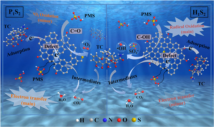 | Fig. 5. The proposed mechanism of P1S2/PMS as well as H1S2/PMS on TC removal. | |