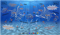 The extensive application of antibiotics across diverse sectors, encompassing animal husbandry, agriculture as well as medical practice, has resulted in the appearance of antibiotic resistant genes as well as antibiotic resistant bacteria in natural environment [1]. Due to their harmful impacts on both human health and ecosystem, World Health Organization has categorized them as a significant public health threat in 21st century [2]. Tetracycline (TC) is a broadly utilized antibiotic in both medical practice and animal farming. Its potent antibacterial properties, coupled with notable ecological toxicity, potential carcinogenic effects, and resistance to natural biodegradation, render even minute concentration of TC in the environment an obvious threat to human [3]. Consequently, there is an immediate need for an efficacious strategy to manage TC, thereby mitigating associated environmental risks. Peroxymonosulfate (PMS)-involved advanced oxidation processes (AOPs) have demonstrated notable efficacy for recalcitrant organic pollutants removal, attributed to the high oxidative potential of reactive oxygen species (ROS), rapid reaction kinetics, and their applicability in a broad pH range [4]. For instance, Hu et al. [5] successfully prepared a bubble network catalyst, Co@NCNTs-T (T = 500, 600, 700 ℃), through a simple one-step calcination method. These catalysts were constructed by encapsulating small cobalt nanoparticles within N-doped carbon nanotubes and sewing them into a bubble-like structure. This unique design significantly enhanced the inactivation resistance during the degradation of TC through PMS activation. Conventional metal-based catalytic materials are extensively used to activate PMS. Nevertheless, the majority of metal catalysts unavoidably suffer from the drawback of secondary pollution, stemming from the leaching of metal ions [6].