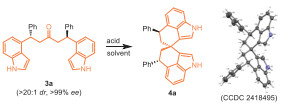 In conclusion, we have developed a new type of C2-symmetric spirobiindole structure. By employing the 'central chirality-controlled construction of axial chirality' strategy, the spirostructure could be easily synthesized in high yields with excellent diastereoselectivities and enantioselectivities. In addition, the reaction features tunable enantiomer synthesis by switching the substrate combination under the same conditions. Further studies on the applications of the spirobiindole structures are ongoing in our laboratory