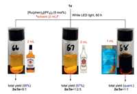 The robustness of the current aza-[2 + 2] reaction were tested by subjecting complex ingredients in the reaction solvents. These "liquids" were used directly after commercial purchase (Fig. 2). We found adding commercially available American bourbon or rum did not affect the efficiency of this reaction yielding 2a/3a in 98% and 97% combined yield, respectively. The different dr ratio might imply that there are certain acidic ingredients in American bourbon that play a similar role as TFE. Surprisingly, the reaction yielded quantitative yield of 2a/3a combined, even if the coffee concentrate were used as co-solvent, which are known to contain complex alkaloids, organic acids and lipids.