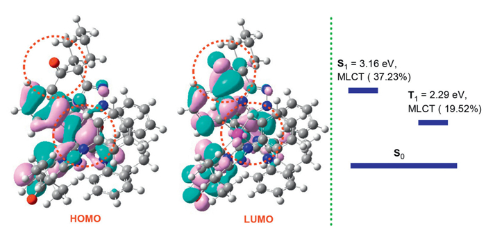 | Scheme 6. Electron cloud distribution of HOMO and LUMO orbital of fac-TzCOIr. | |