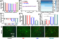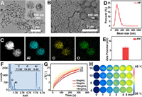 | Fig. 1. Fabrication and characterization of AM NIAs. (A, B) The TEM and SEM image of AM NIAs. (C) The TEM-Mapping (C, O, and Al) of AM NIAs. (D-H) The dynamic light scattering and zeta-potential value, EDS analysis, temperature rose curve and thermal infrared diagram of AM NIAs (n = 3). Data are presented as mean ± standard deviation (SD). *P < 0.05, ***P < 0.001. | |