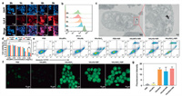 | Fig. 3. Effects of HAuHbO2 on 4T1 tumor cells. (a) Confocal laser scanning microscopy (CLSM) images of 4T1 cells interact with Cy5.5+HAuHbO2 at different time points. Scale bar: 10 µm. (b) Flow cytometry analyses of red fluorescence levels of 4T1 cells incubated with Cy5.5+HAuHbO2 at different time points. (c) Bio-TEM examination of the position of HAuHbO2 in the 4T1 cells. (d) The cell counting kit-8 (CCK-8) technique assesses cell viability under laser. (e) Flow cytometry was used to analyze the apoptosis of cells. (f) The production of •OH in 4T1 cells was analyzed by CLSM after different treatments. Scale bar: 10 µm. (g) Quantification of ·OH fluorescence in 4T1 tumor cells. All data were presented as means ± SEM (n = 3). **P < 0.01, ***P < 0.001. | |