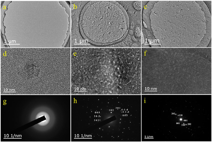 | Fig. 1. The TEM, HRTEM and SAED images for (a, d, g) Ti400, (b, e, h) Ti400Pt40 and (c, f, i) p-Ti400Pt8, respectively. | |