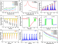 | Fig. 2. Sensing performance of p-Ti400Ptx samples (x = 5, 8, 12, 16 and 20) of (a) 80 ppm NO and (b) 10 ppm HF at different working temperature. Dynamic sensing performance of (c) NO and (d) HF for p-Ti400Pt8. Response/recover performance for (e) NO and (f) HF. Dynamic sensing performance for (g) NO and (h) HF. (i) Resistance for p-Ti400Pty (y = 5, 8, 12, 16 and 20) at different working temperature. | |