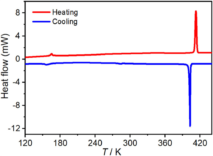To evaluate the thermal properties of 1, thermogravimetric analysis was performed. The results indicated no significant mass loss below 480 K, demonstrating excellent thermal stability (Fig. S2 in Supporting information), a crucial characteristic for high-temperature applications. Additionally, differential scanning calorimetry (DSC) was employed to investigate the phase transitions of 1. The DSC results revealed two reversible phase transitions occurring at 165 and 413 K during heating, and at 157 and 403 K during cooling, respectively (Fig. 1). These transitions correspond to the low-temperature phase (LTP), room-temperature phase (RTP), and high-temperature phase (HTP), respectively. Notably, the substantial entropy change of 22.86 J mol−1 K−1 observed at 413 K suggests considerable molecular rotational freedom at elevated temperatures. This feature is particularly advantageous for hot-pressing techniques, where molecular mobility aids in achieving higher densification.