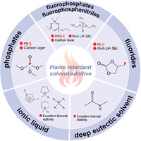 3. The flame-retardant solvents classification and the modulation of their solvation structureAs mentioned above, the development of non-flammable liquid electrolytes that are both flame-retardant and battery-grade safe is of paramount importance. It is widely acknowledged that the design of electrolytes is a complex, systematic project. Consequently, the introduction of flame-retardants has an impact on all aspects of battery performance, including thermal stability, electrochemical stability and interfacial stability. This section provides an overview of the most commonly used flame-retardant solvents, including phosphates, fluorides, fluorosphates and fluorophosphonitriles, ionic liquids, and deep eutectic solvents (Fig. 2). Finally, the influence of a particular category of flame-retardant solvents on the battery system is elucidated, along with proposals for optimization strategies.