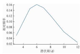 多数文献显示COVID-19的潜伏期<14 d,中位数为3~7 d,Lauer等[12]的研究结果显示平均潜伏期为5.2(95%CI:4.4~6.0)d,日本的一项研究显示平均潜伏期为5(95%CI:2~14)d[13],来自荷兰的一项研究估算的平均潜伏期为6.4(95%CI:5.6~7.7)d[14],这些与本研究结果相似,伽马曲线拟合分布也与Li等[3]的结果一致,但也有研究评估的潜伏期M为7 d[15]。这些研究结果有差异,可能与传染源的暴露时间调查不够准确,以及样本量不够大有关。