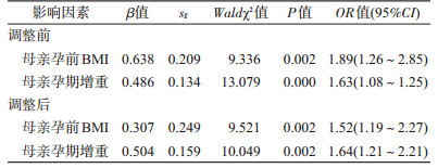 (1)孕前BMI划分标准:根据中国成人超重和肥胖症预防控制指南[4],将母亲孕前BMI (kg/m2)分为低(<18.5)、正常(18.5~24.9)和高(≥25.0)3组。